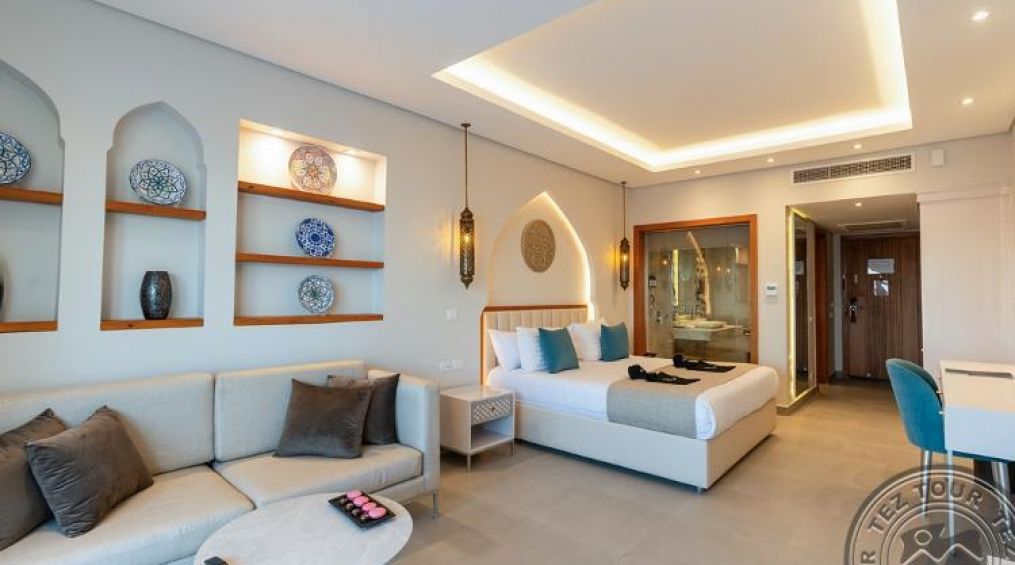 2 Jacuzzi Suite (sea view, макс. 2 + 1 или 3 човека, само една спалня с двойно легло, душ, тераса с джакузи, 40 м2). Доп. място - единично легло.