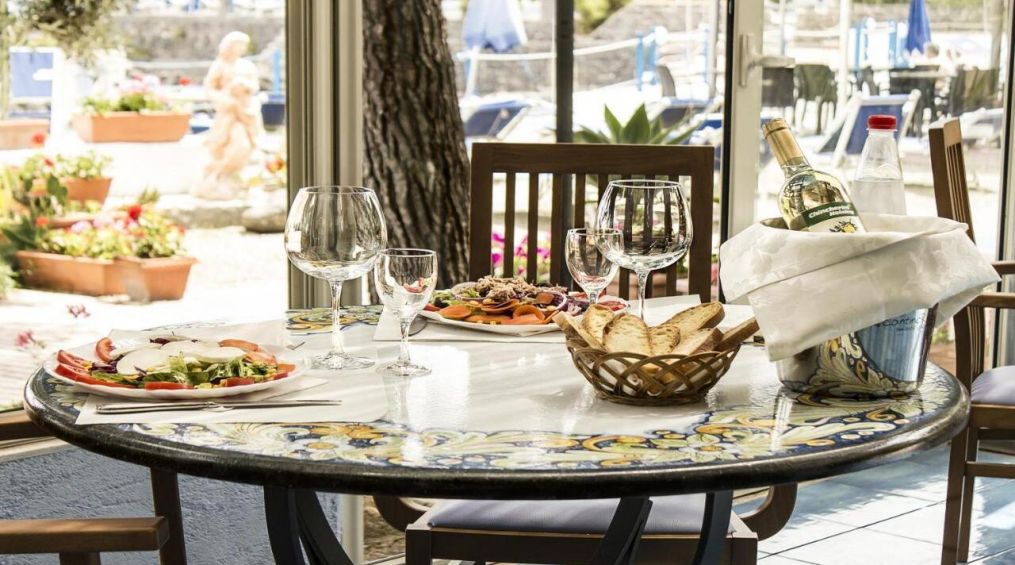 Ресторантът на хотела е отворен за обяд и предлага вкусни образци на сицилианската кухня.