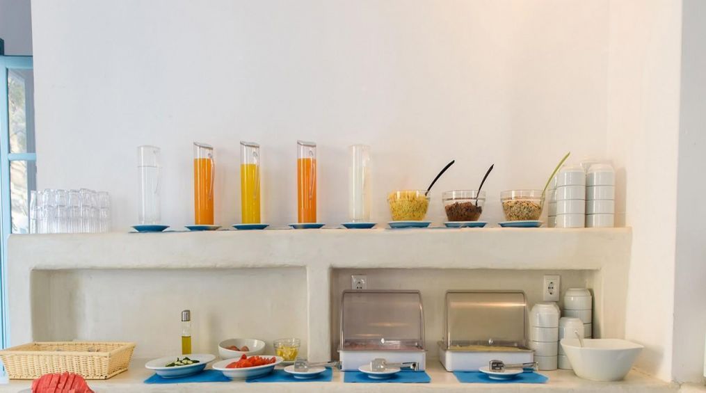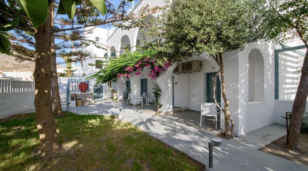 Хотелът се състои от 2 сгради и е построен в модерна цикладска архитектура с много влияния от природата, наскоро реновиран. Намира се в много тих район, на 150 метра от плажната алея, където можете да намерите ресторанти, магазини и барове или просто да се разходите до плажа, за да се отпуснете. Хотелът предлага голям плувен басейн със снек бар, отворен през целия ден.