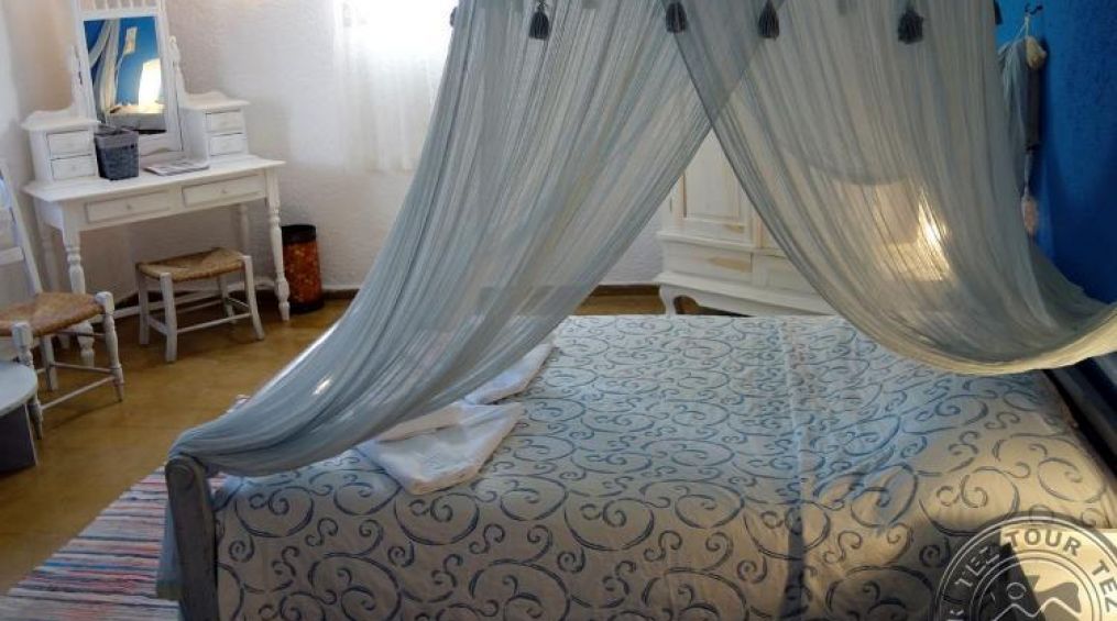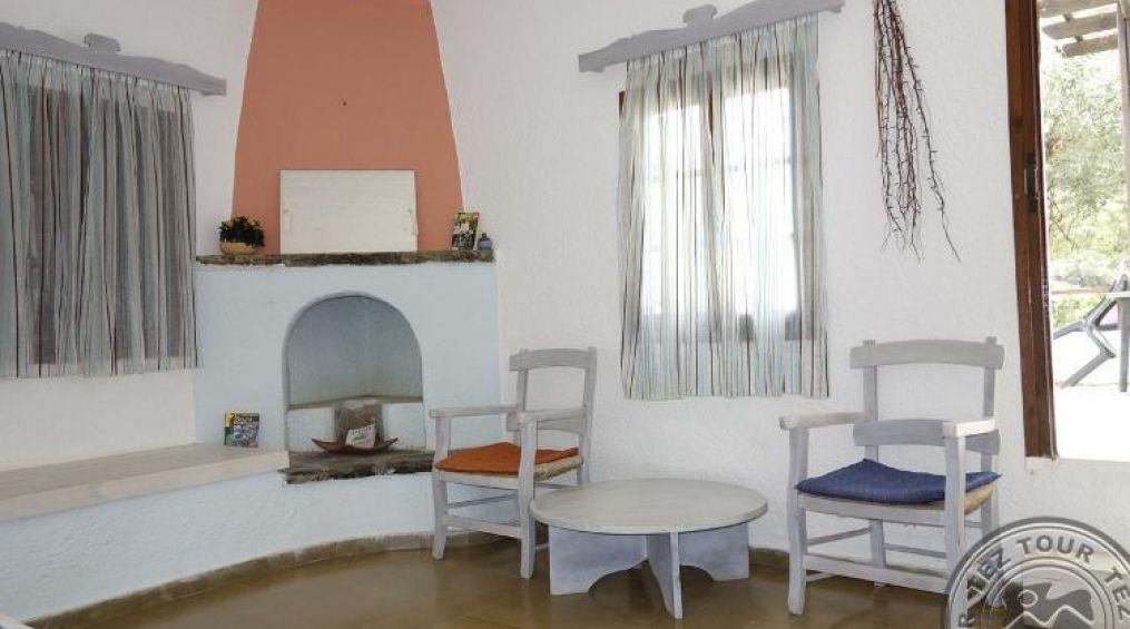 Хотелът е в стила на традиционно гръцко село, построено на хълм. Всички стаи са оборудвани с кухня и разполагат с необичаен дизайн, който съчетава най-романтичните декорации и традиции на острова. Не предлага анимация. Препоръчва се за тиха и спокойна почивка.