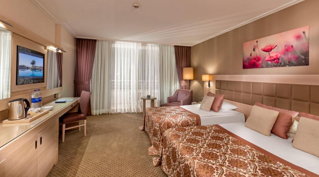 Хотелът се намира на брега на морето, на 7 минути пешеходно разстояние от плажа, летище Анталия се намира на 19 км от хотела.