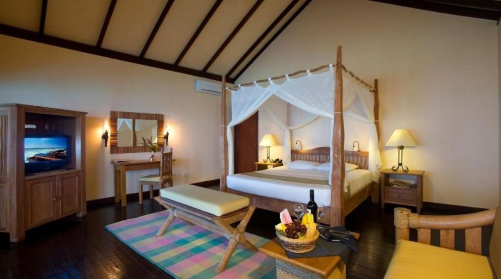 В стаите: Хотелът разполага със 118 вили, три вида настаняване - superio villa,deluxe villa и вила над водата. Те са оборудвани с климатик, телевизор, сателитна телевизия, вентилатор, минибар, сейф, електрическа кана, набор за приготвяне на чай/кафе, халат, сешоар, машина за бръснене, репелент за комари, шезлонги, тоалетни принадлежности.