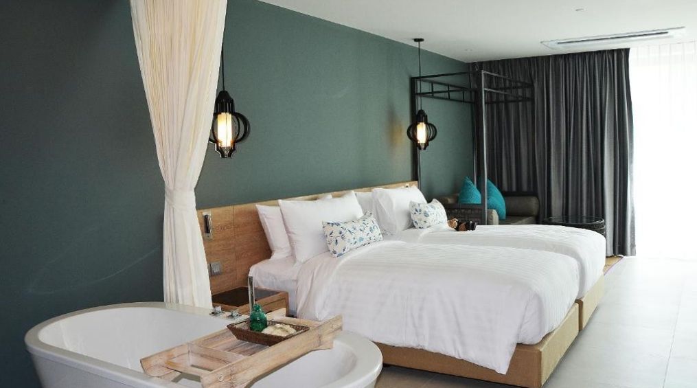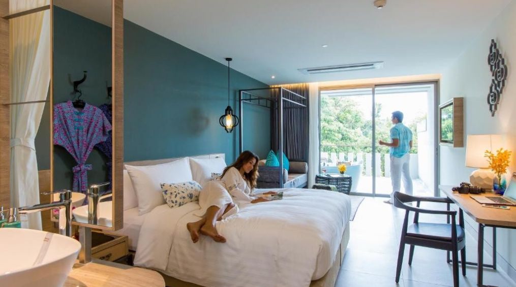 PREMIER DELUXE - изглед към залива Патонг и Андаманско море. Всяка от тези луксозно обзаведени стаи в земни тонове разполага с релаксиращ душ тип тропически дъжд и божествена свободностояща вана, легло с кралски размери или две единични легла, кът за отдих, малко бюро. Разполага със стандартното оборудване като в другите типове стаи.