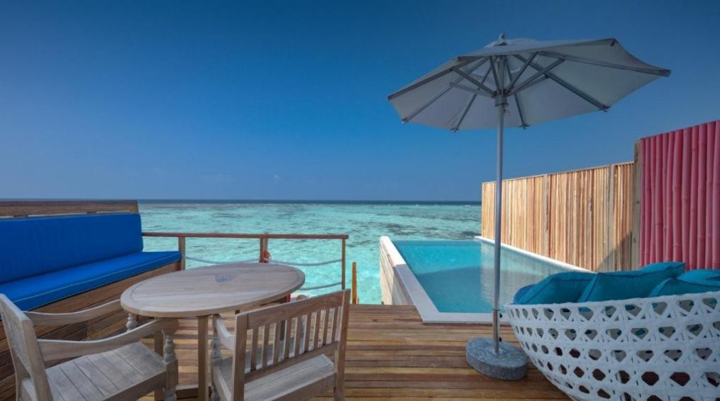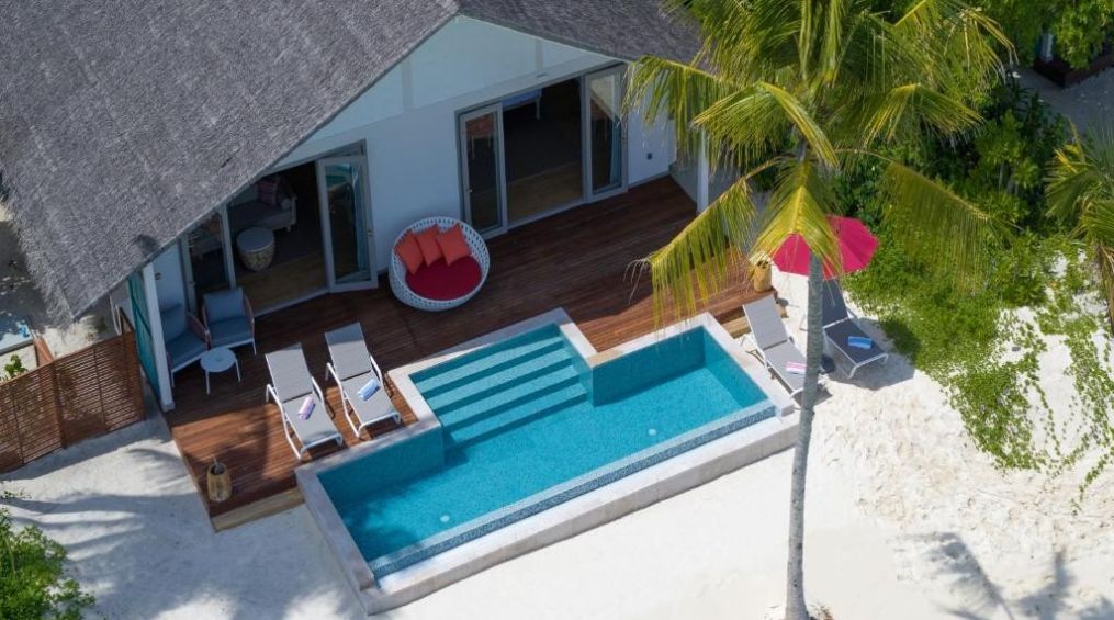 Луксозният хотел предлага настаняване в комфортни вили на остров Маамигили в атола Раа, в северната част на Малдивите.