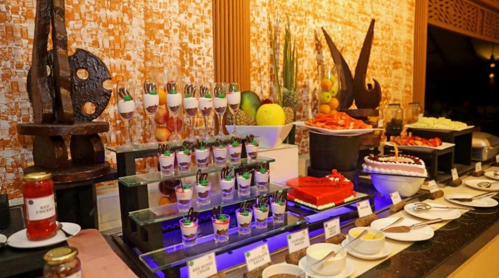 На територията на хотела: Хотелът разполага с открит отопляем басейн, основен ресторант Mela с бюфет, ресторант Blitz по меню, основен бар и бар на плажа. Безплатен Wi-Fi е наличен в целия хотел. Хотелът разполага също с пералня и конферентна зала от 24 кв. м.