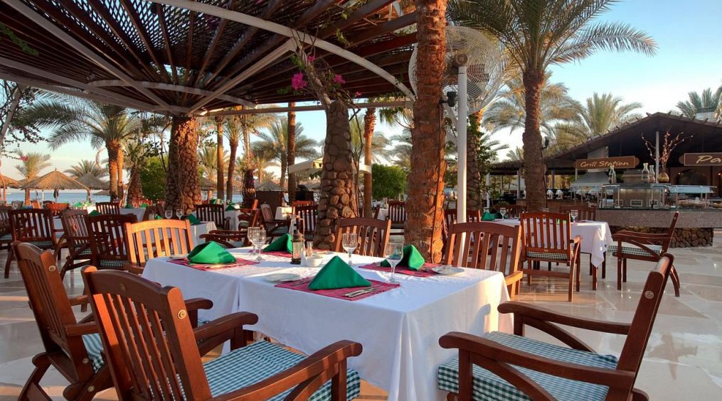 Основен ресторант El Wadi, италиански а ла карт ресторант Al Fresco (едно безплатно посещение на престой, след предварителна резервация), наргиле бар (срещу заплащане), бар Oasis, бар на плажа, бар басейн Flambé, кафене Havana, бар Pirates, 4 открити басейна (един от които е отопляем през зимата), СПА център, достъп до Cleo Park (един от най-големите водни паркове в Шарм Ел Шейх с 21 пързалки), дневни и вечерни шоу програми.