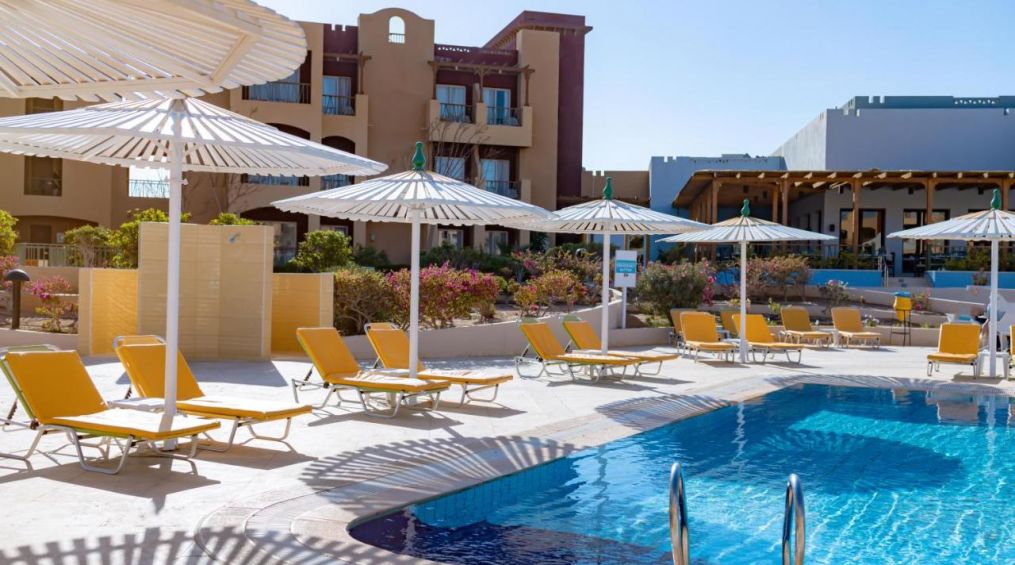 Намира се на 30 км. от летище Хургада, на 40 км. от центъра на Хургада, в района на Макади бей, на 800 м. от брега на морето.