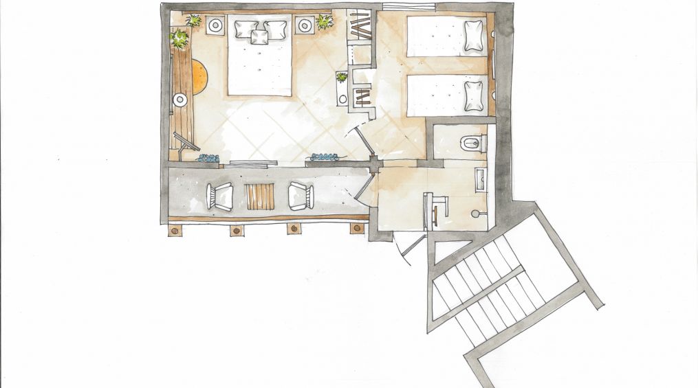 Хотелът разполага с общо 50 стаи, от които 32 Standard room (24 м2), 15 Family room (2 спални, 1 баня - 33 м2). Всички стаи са оборудвани с климатик, телевизор, телефон, баня с душ, сешоар, сет за кафе/чай, мини-бар, сейф. Почистване на стаите и смяна на кърпите - всеки ден, смяна на спалното бельо - 2 пъти седмично. Светли и модерни стаи със свежи оранжеви нюанси, с минималистичен дизайн, предлагащи комфортен престой.
