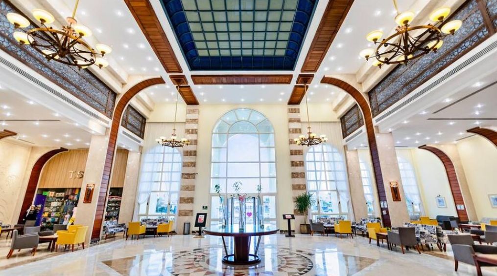 Основен ресторант, а-ала-карт ресторант, 3 бара, открит басейна с 5 пързалки, конферентна зала, СПА център, паркинг, магазини, Wi - Fi (в лоби). За децата: детски басейн, мини клуб (4-12г.), детска площадка. Безплатни услуги: Тенис на маса, фитнес, водна гимнастика, аеробика, боча, дартс, плажен волейбол, анимация. Платени услуги: сауна, парна баня, турска баня, масаж, пилинг, джакузи, салон за красота, тенис на корт, билярд, моторни водни спортове, дайвинг, уиндсърфинг.