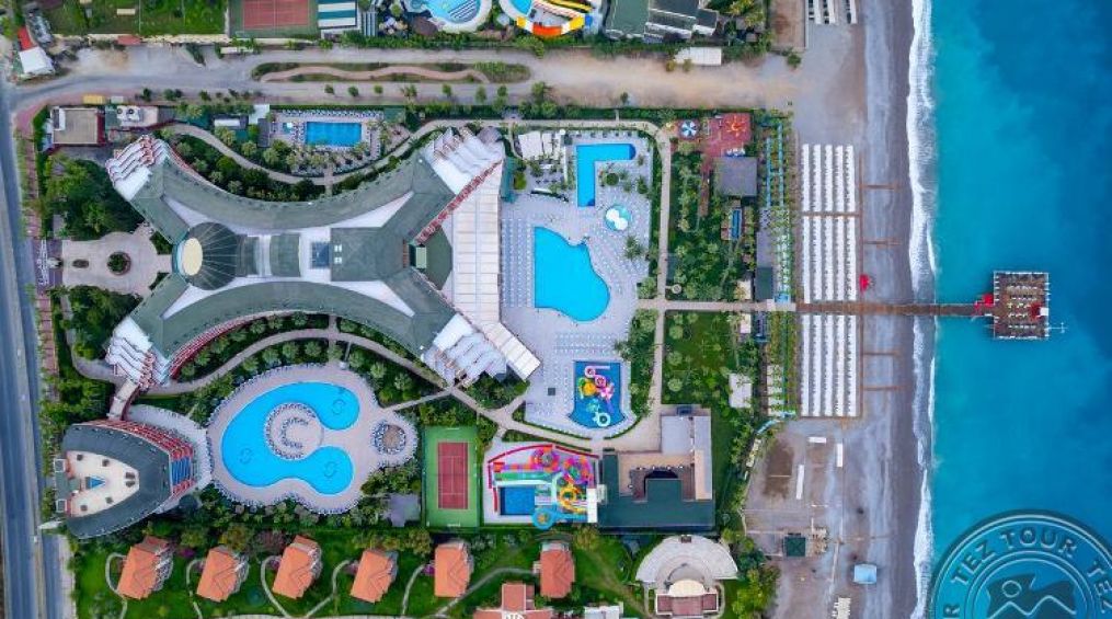 Хотелът е разположен на 90 км от летището в гр. Анталия, на 32 км от гр. Алания, в Окурджалар на брега на морето.Построен е през 2001 година, обща площ 50 000 м2. Последно реновиран през 2013 година.