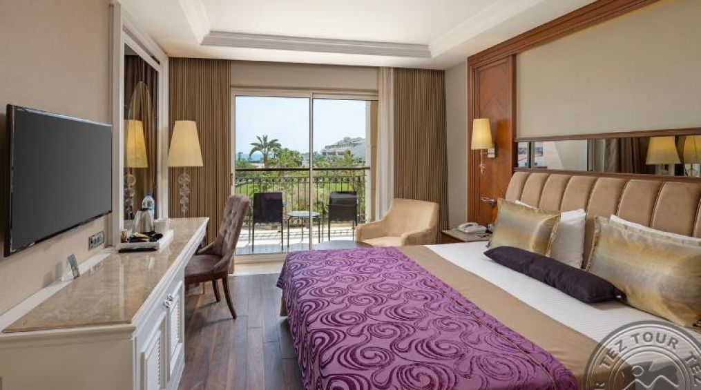 Хотелът е разположен на 40 км от летището, на 50 км от центъра на гр. Анталия, на 11 км от селището Серик, на брега на морето.Построен е през 2005 г., обща площ 64 000 м2, последно реновиран през 2013; през 2013 г. е построена Deluxe Building.Състои се от седем 4-етажни блока Main Building и четири 5-етажни корпуса Deluxe Building (през пътя с надземен преход, срещу Main Building):Main Building:258 standard room (от тях 3 стаи за инвалиди; макс. 3 чов., 27 м2);57 едностайни quadriple room (макс. 3+1 чов., 30 м2);99 двустайни family room (2 спални с врата, 1 баня, 2 телевизора, макс. 4 чов., 41 м2);21 двустайни Family Bunk Bed (2 спални с врата, в едната от тях french bed, във втората двуетажно и единично легло, макс. 3+2 чов., 41 м2);4 тристайни Pasha Suite (гледка към морето, хол, 2 спални с врата, 2 бани: едната от тях с джакузи, 3 телевизора, 2 балкона, макс. 4 чов., 66 м2, VIP- обслужване);3 тристайни Sultan Suite (частичен изглед към морето, хол, 2 спални с врата, 2 бани: едната от тях с джакузи, 2 телевизора, 2 балкона, DVD-плейър, макс. 4 чов., 81 м2, VIP- обслужване);1 Madonna Suite (намира се на отделен етаж, пряка панорамна гледка към морето, мека мебел, king size bed, сауна, билярдна маса, баня с джакузи и душ, тераса (22 м2), индивидуален климатик, DVD-плейър, подова настилка - епоксидно покритие, макс. 2 чов., 175 м2 едно помещение разделено на няколко тематични зони, VIP- обслужване);1 тристаен Presidential Suite (намира се на отделен етаж, гледка към морето, хол, 2 спални с врата, 2 бани: едната от тях с джакузи, работно бюро, 3 телевизора, индивидуален климатик, тераса, макс. 4 чов., 180 м2, VIP-обслужване).Deluxe Building:198 deluxe building standard room (от тях 4 стаи за инвалиди, макс. 2+1 чов., 27 м2);26 едностайни Deluxe Quadriple (2 двойни легла, вана и душ, макс. 3+1 чов., 48 м2);30 двустайни Family room (2 спални с врата, 2 телевизора, макс. 4 чов., 41 м2);4 двустайни Junior Suite (хол, спалня без врати, баня с душ, 2 телевизора, макс. 2 чов., 48 м2); 2 двустайни Executive Suite (хол, спалня с врата, баня с душ, джакузи, 2 телевизора, макс. 2 чов., 59-77 м2);
